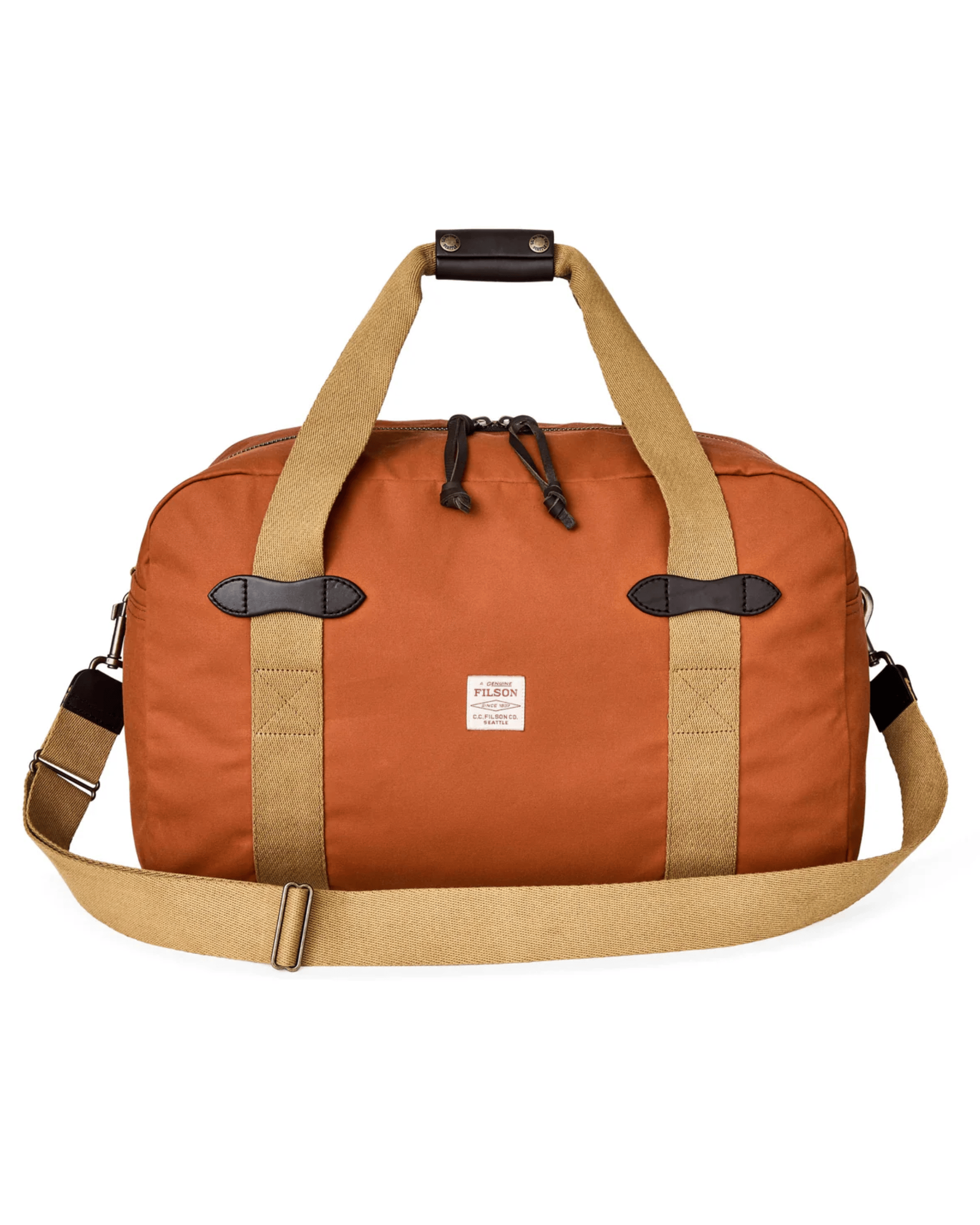The Tin Cloth Medium Duffle is made with our iconic waxed canvas that's protected foresters, sportsmen, and tradesmen from harsh weather, brush, and abrasion for more than a century. Thick cotton webbing handles are stitched down the sides of the bag for maximum strength. The carry grip is made with saddle-grade Bridle Leather that will mold to the shape of your hand for decades of comfortable carry. Nylon lines the interior for an added layer of protection for gear. The heavy-gauge metal zipper from YKK® is bult for years of unfailing service. Removable, adjustable cotton webbing shoulder strap. Exterior stow pockets on each end.