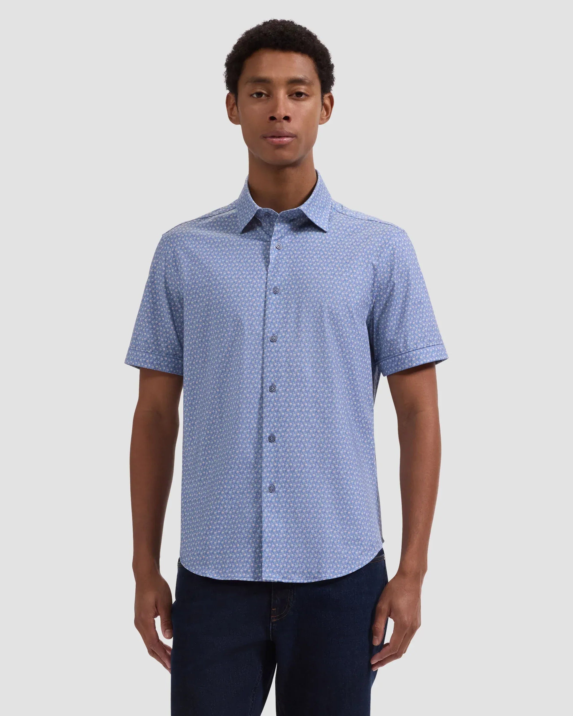 The Miles OoohCotton® short-sleeve shirt offers versatile comfort for warmer days with a conversational flamingo print, point collar, and a curved hem for a polished tucked or untucked look. Made from our signature OoohCotton® double-mercerized performance fabric with 8-way stretch, moisture-wicking, quick-dry, wrinkle-resistant, and thermal comfort properties.