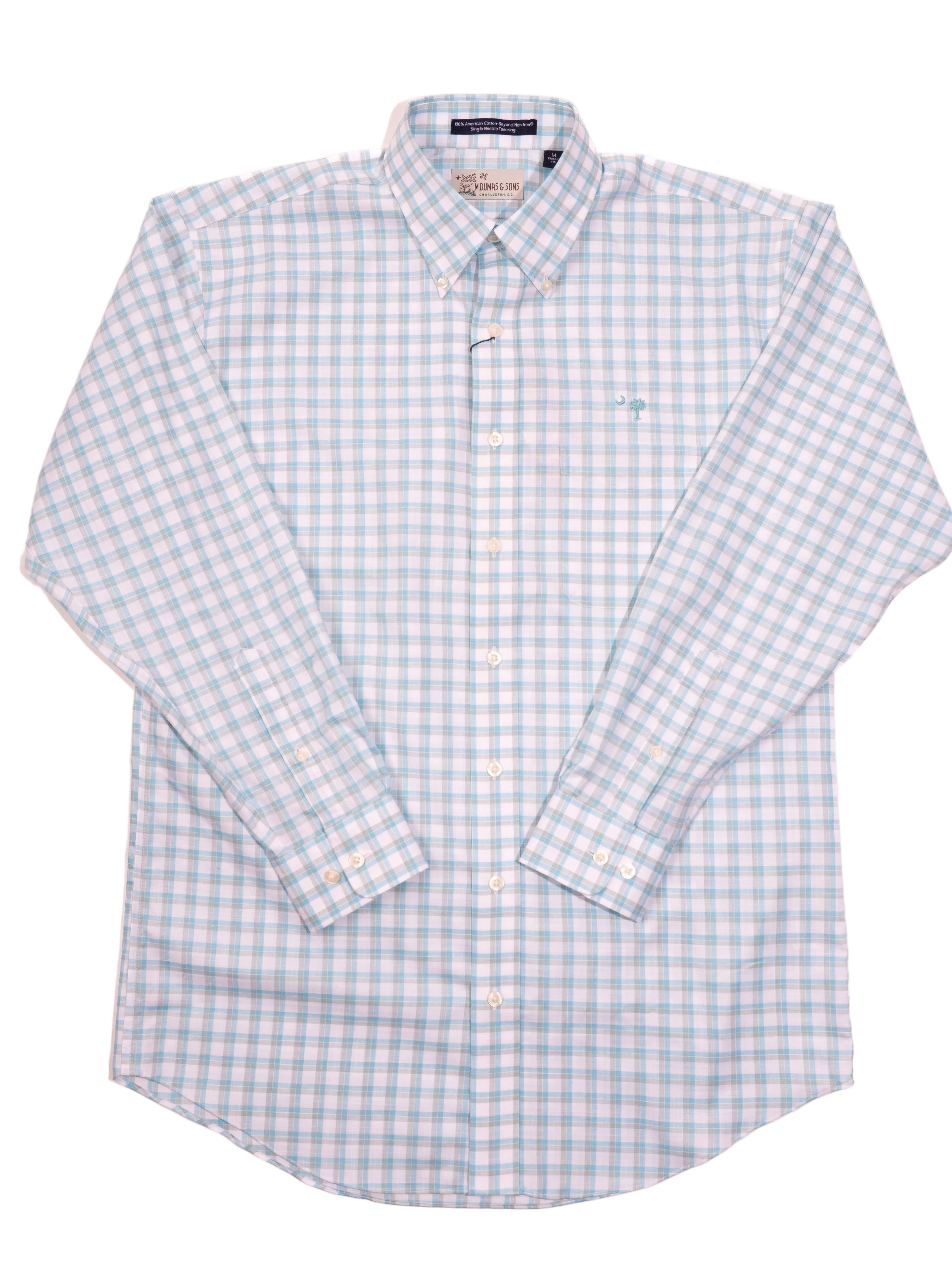 Classic fit sport shirt with embroidered crescent moon and palmetto tree on pocket.