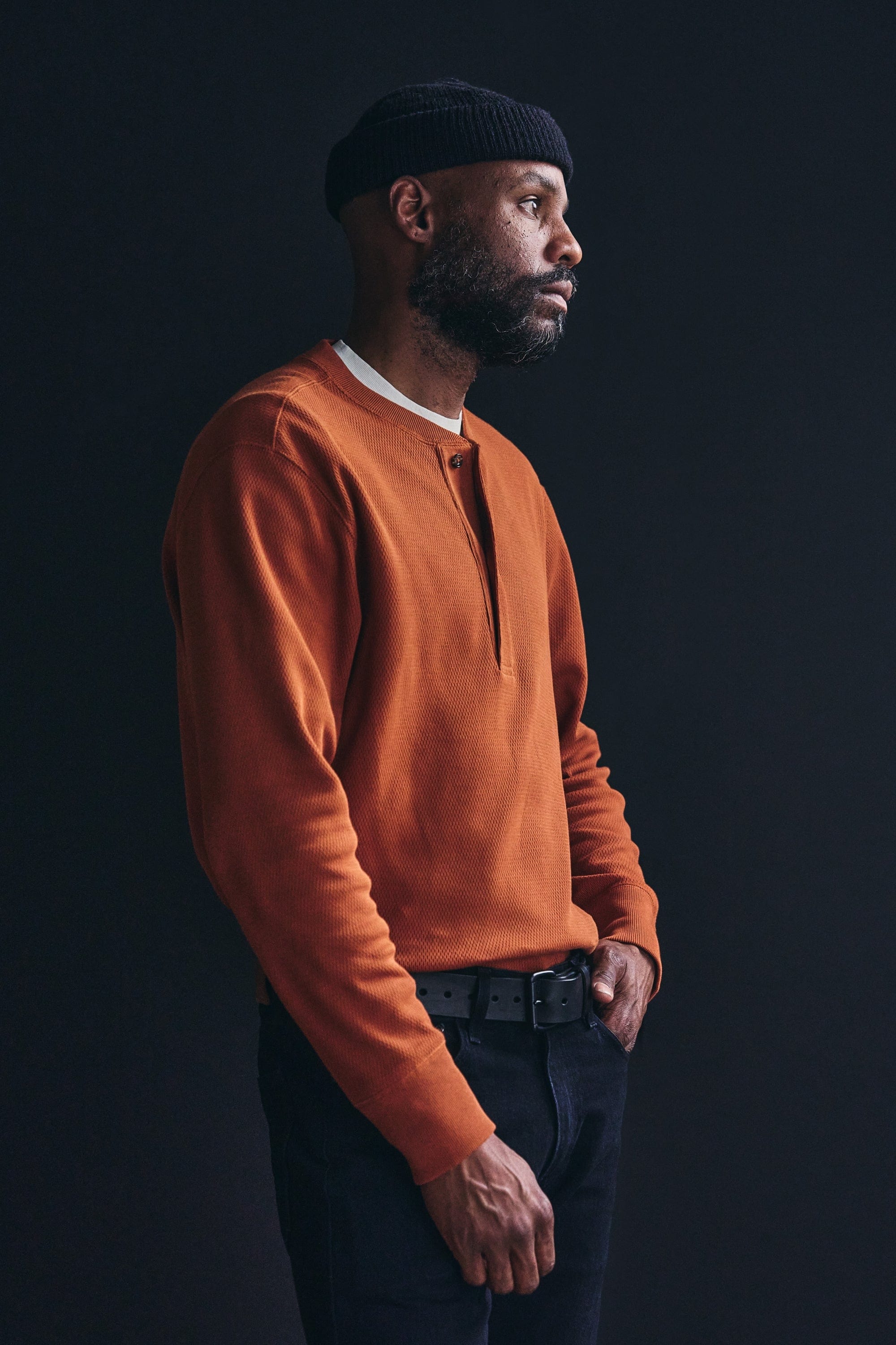Waffle Knit Henley- Rust