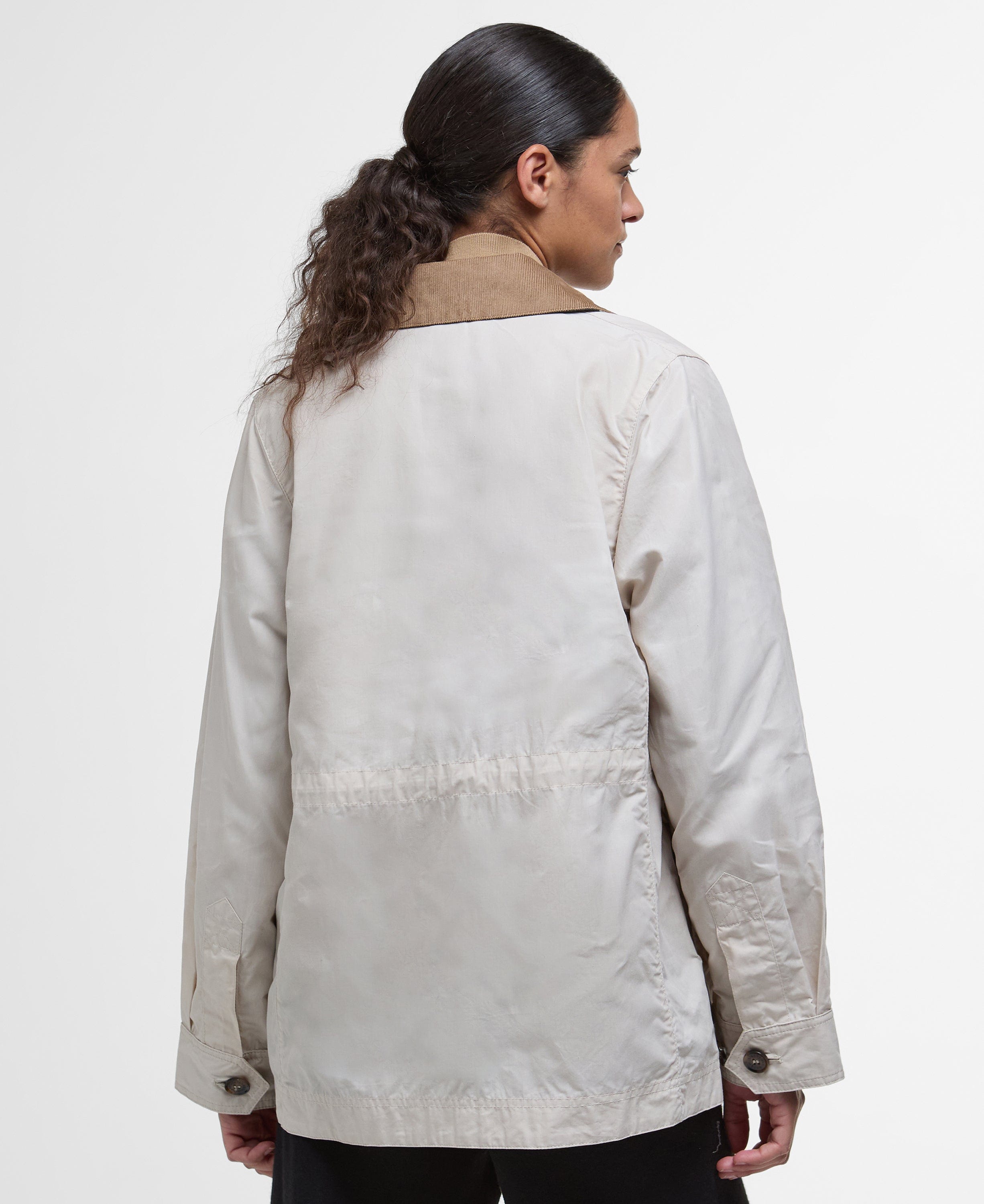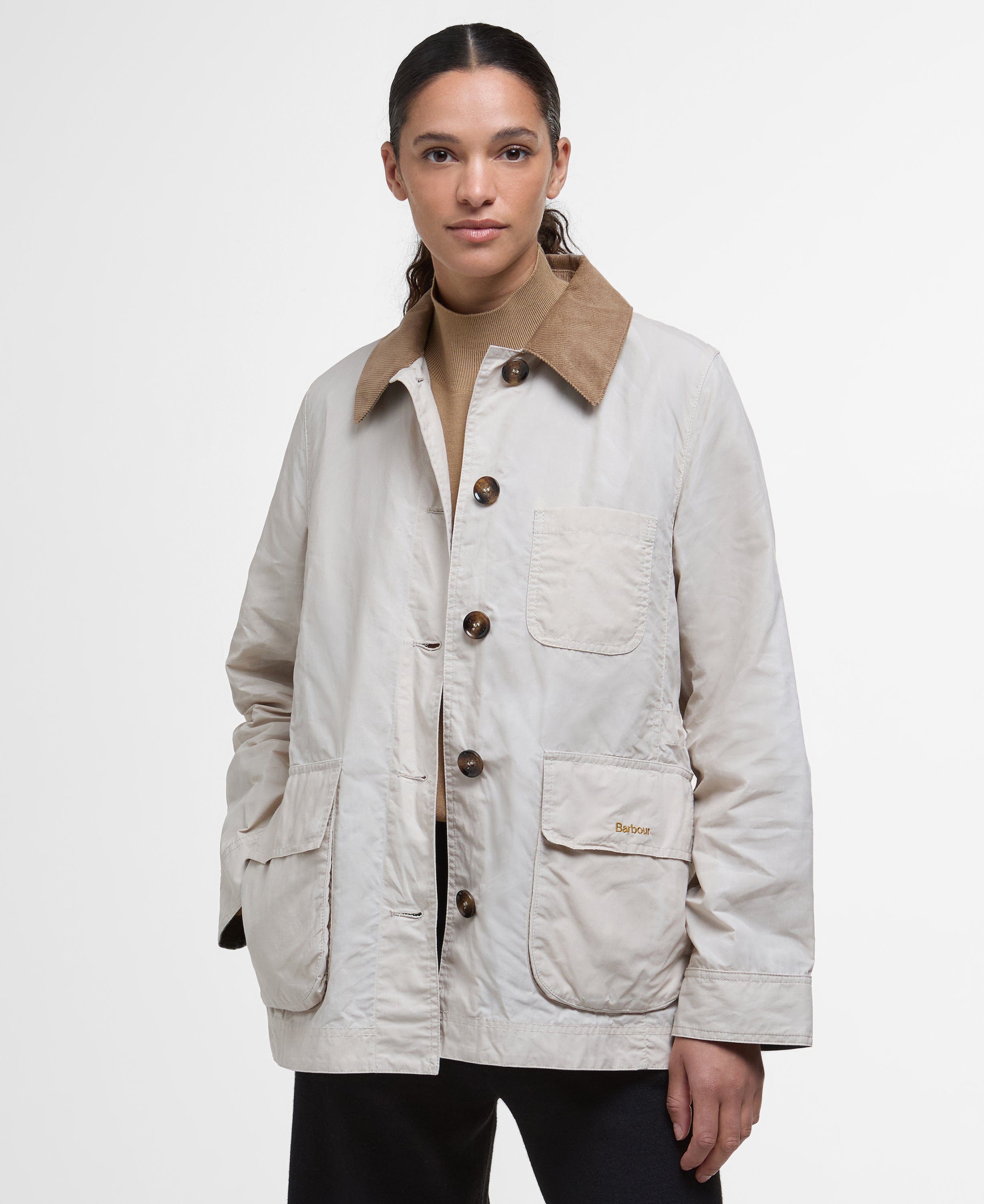 Embrace timeless style with the Barbour Averie Showerproof Jacket. This button-down chore jacket features a classic cord collar, bellowed pockets, and a tartan under cuff for a touch of heritage charm. The internal draw cord allows for a customisable fit. The mock horn buttons complete the authentic Barbour aesthetic offering a perfect blend of tradition and innovation, ideal for everyday wear or casual outings.