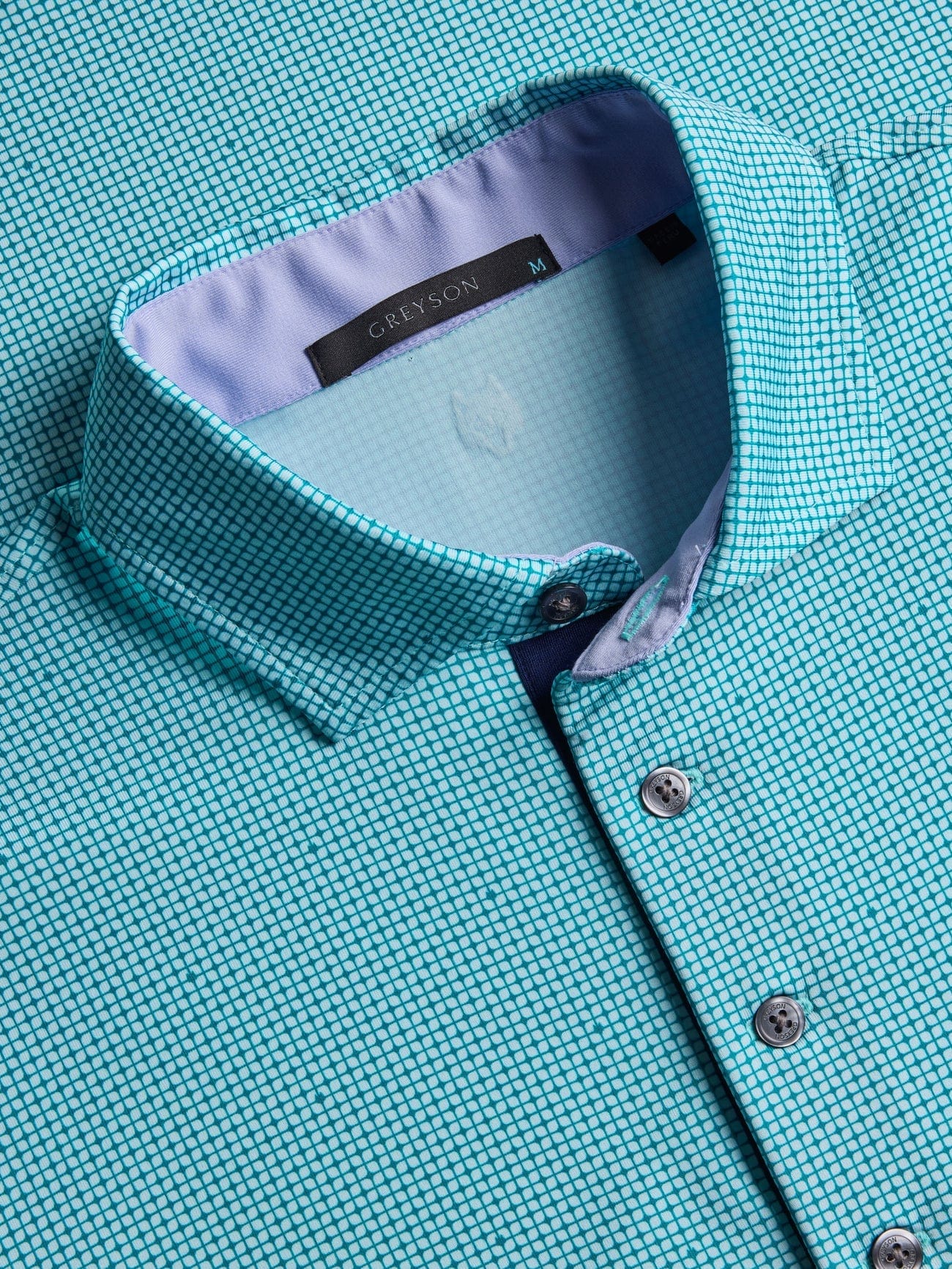 The Beacon Polo is elevated with a refined signature pattern. Made from breathable, quick-drying fabric with four-way stretch, this performance printed polo ensures freedom of movement and all-day comfort, making it a reliable choice for the course, travel, or warm-weather days in the city. The four-button placket, contrast detailing, and self collar add a touch of refinement, while the open sleeve delivers a comfortable fit.