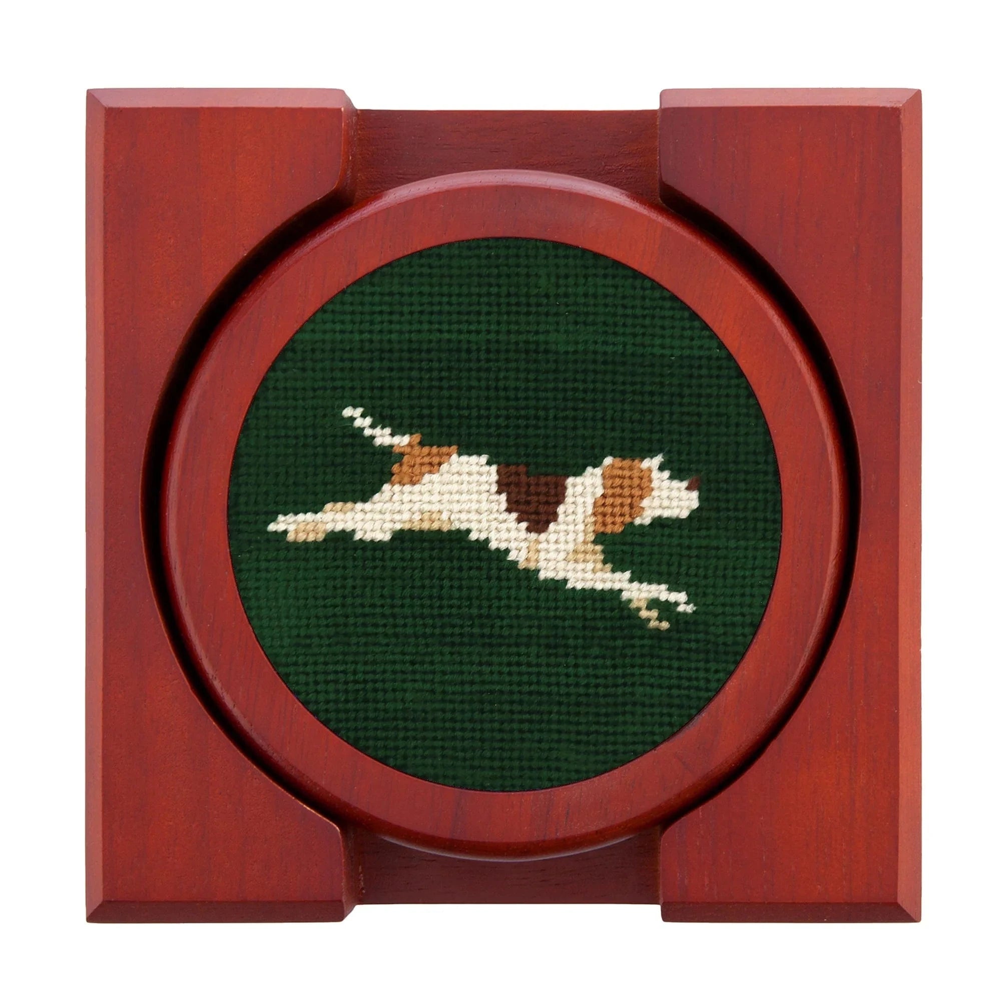 Our 100% hand-stitched Coaster Sets combined our signature needlepoint and chestnut colored wood. Packaged in sets of four within a wooden holder, our needlepoint coasters are a great addition to any coffee or dining room table!
