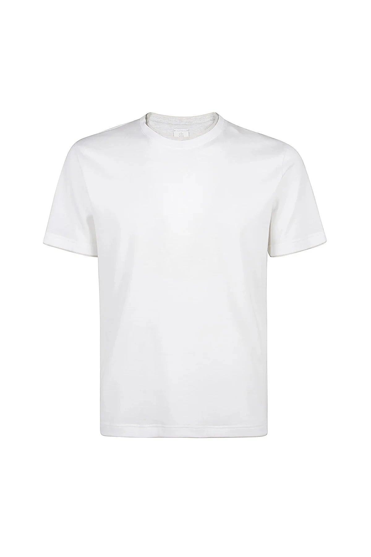 Crew-neck T-shirt, featuring a regular fit and crafted from Giza cotton jersey, celebrated for its exceptional strength, brilliance, and remarkable softness. A classic summer wardrobe staple, enhanced with sporty contrasting finishes