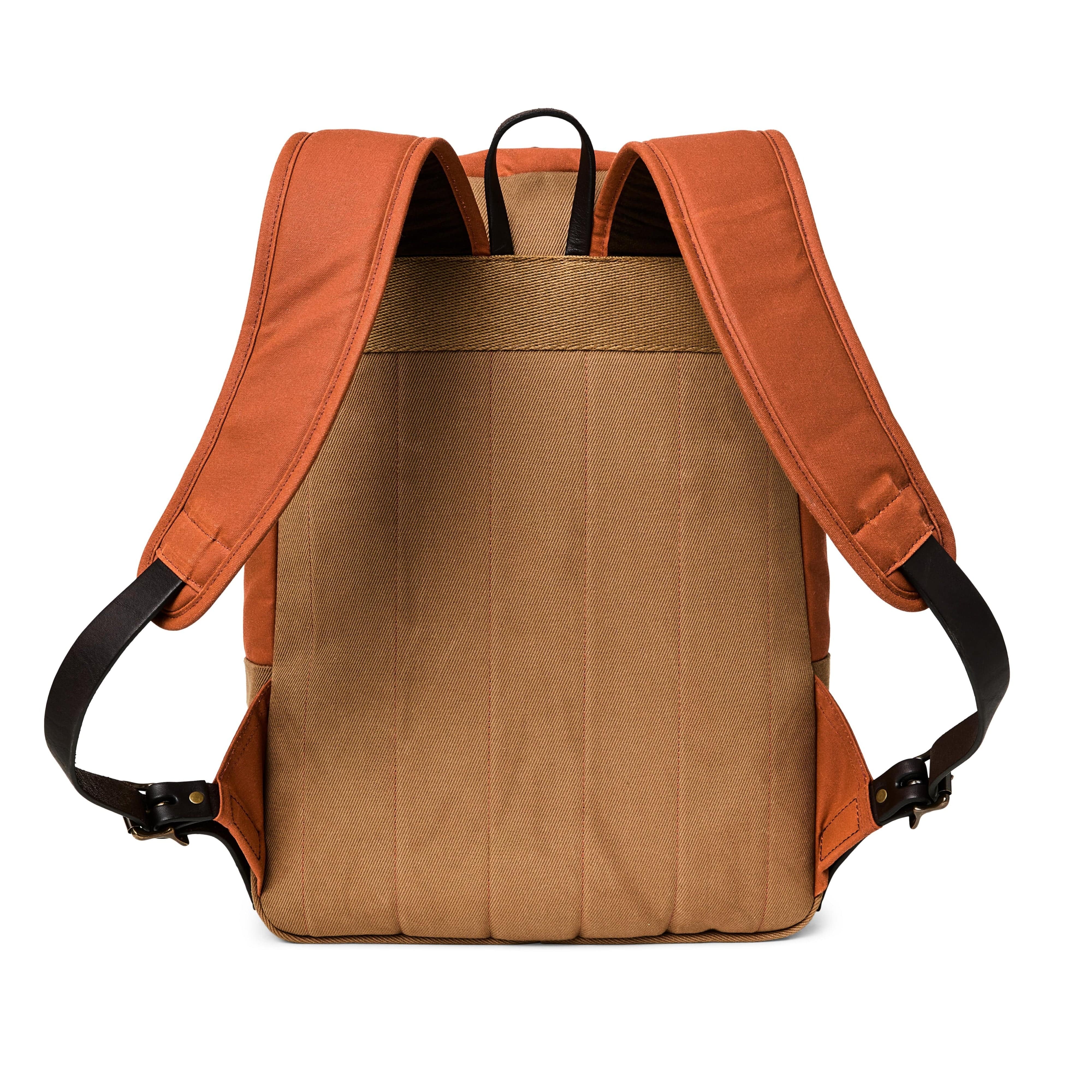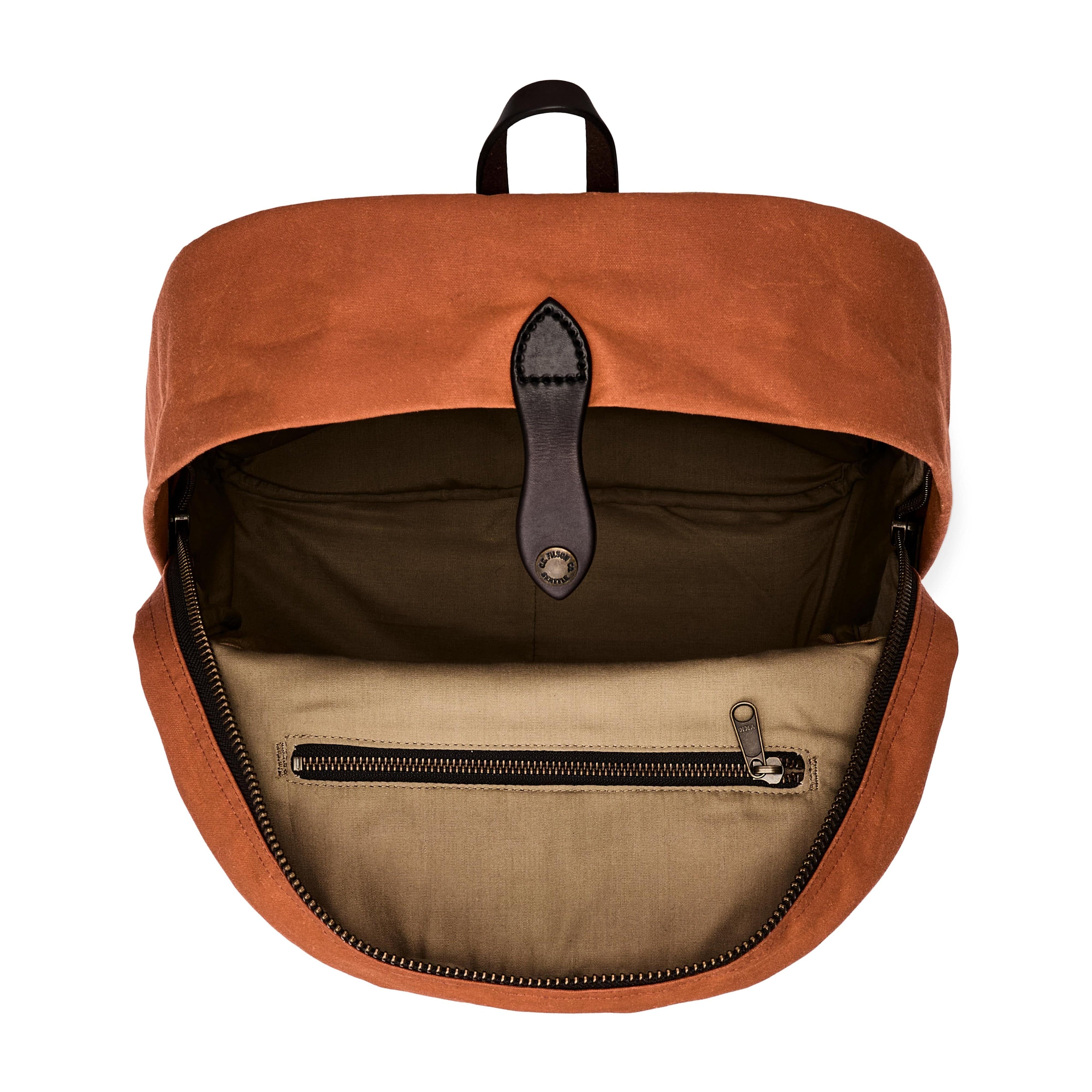 Our Journeyman Backpack carries gear comfortably on the trail and is made with waxed Tin Cloth to protect your gear from wet weather. This tightly woven canvas duck has been thoroughly saturated with wax for water resistance. Our industrial-strength Rugged Twill on the back panel and base adds structure and durability. The padded shoulder straps are lined with Moleskin cotton for comfort and to minimize slipping. The straps are secured to the backpack with vegetable-tanned Bridle Leather that is strong enough for horse saddlery. The main compartment is accessed by a strong brass YKK® zipper that extends more than halfway down the bag for easy access. An interior padded pocket fits laptops up to 15". The exterior pocket is expandable for increased capacity.
