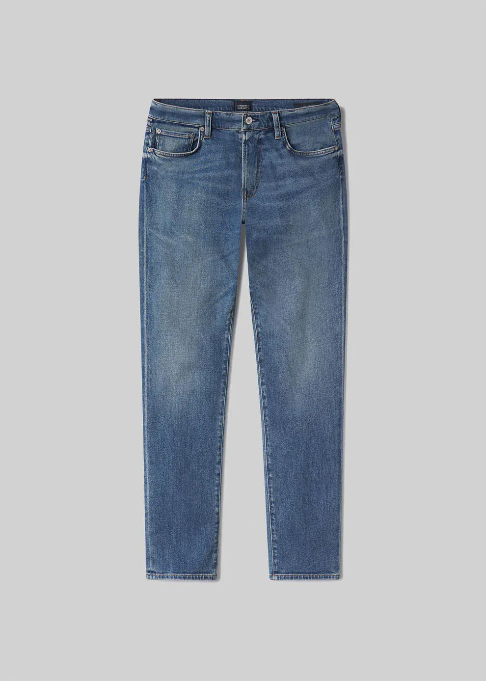 The ‘London’ is a modern slim taper, crafted from signature perform denim blended with cashmere for a refined, ultra-soft feel. Cut to taper from the thigh to the ankle, it offers a sleek yet easy silhouette. The medium-light indigo wash is gently faded and whiskered for a lived-in look.