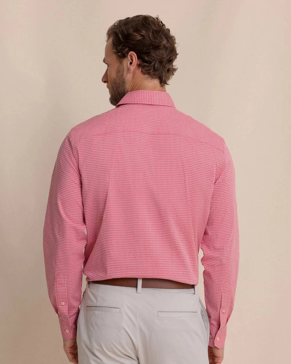 Lightweight, quick-drying, and made to keep you cool, the Crofton Plaid Charleston Long Sleeve Sport Shirt blends performance with classic Southern style. Crafted from wicking fabric with built-in cooling technology, it’s designed to move effortlessly from dockside afternoons to dinner downtown. A refined plaid pattern, hidden button-down collar, and adjustable cuffs create a polished look that’s comfortable in every season.