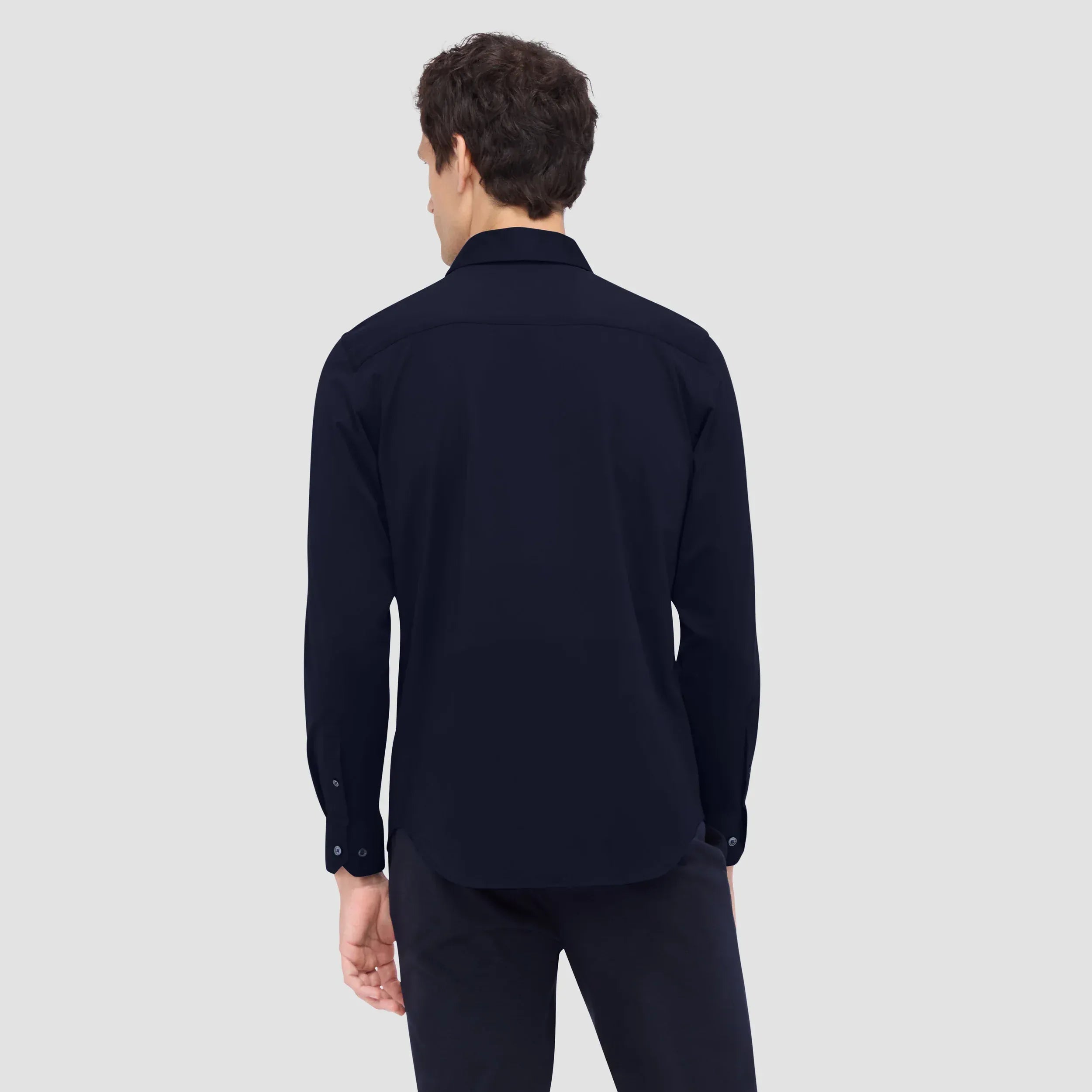 The James solid OoohCotton® shirt features a point collar, adjustable and convertible notched cuffs, mother-of-pearl buttons, and a curved hem perfect for wearing tucked or untucked. OoohCotton® is a performance, double-mercerized, wrinkle-resistant, breathable, and easy-care cotton blend with 8-way stretch, quick-dry, and thermal comfort properties.