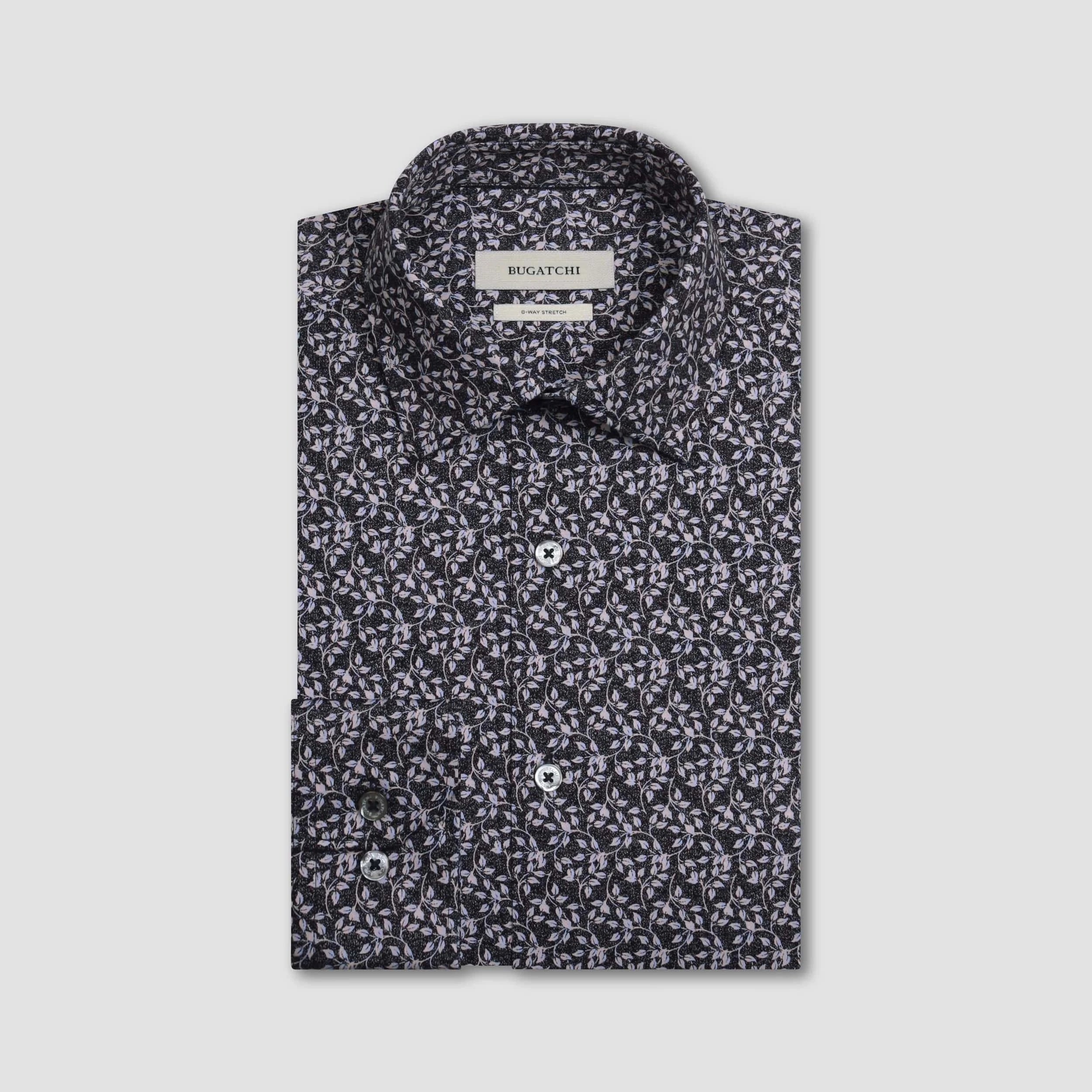 The James OoohCotton® long-sleeved shirt in leaf print features a point collar, mother-of-pearl buttons, and a curved hem for a sleek tucked or untucked look. The notched cuffs are adjustable to allow for customized fit and also convertible to accommodate cufflinks. OoohCotton® is a performance, double-mercerized, wrinkle-resistant, breathable, and easy-care cotton blend with 8-way stretch, quick-dry, and thermal comfort properties.
