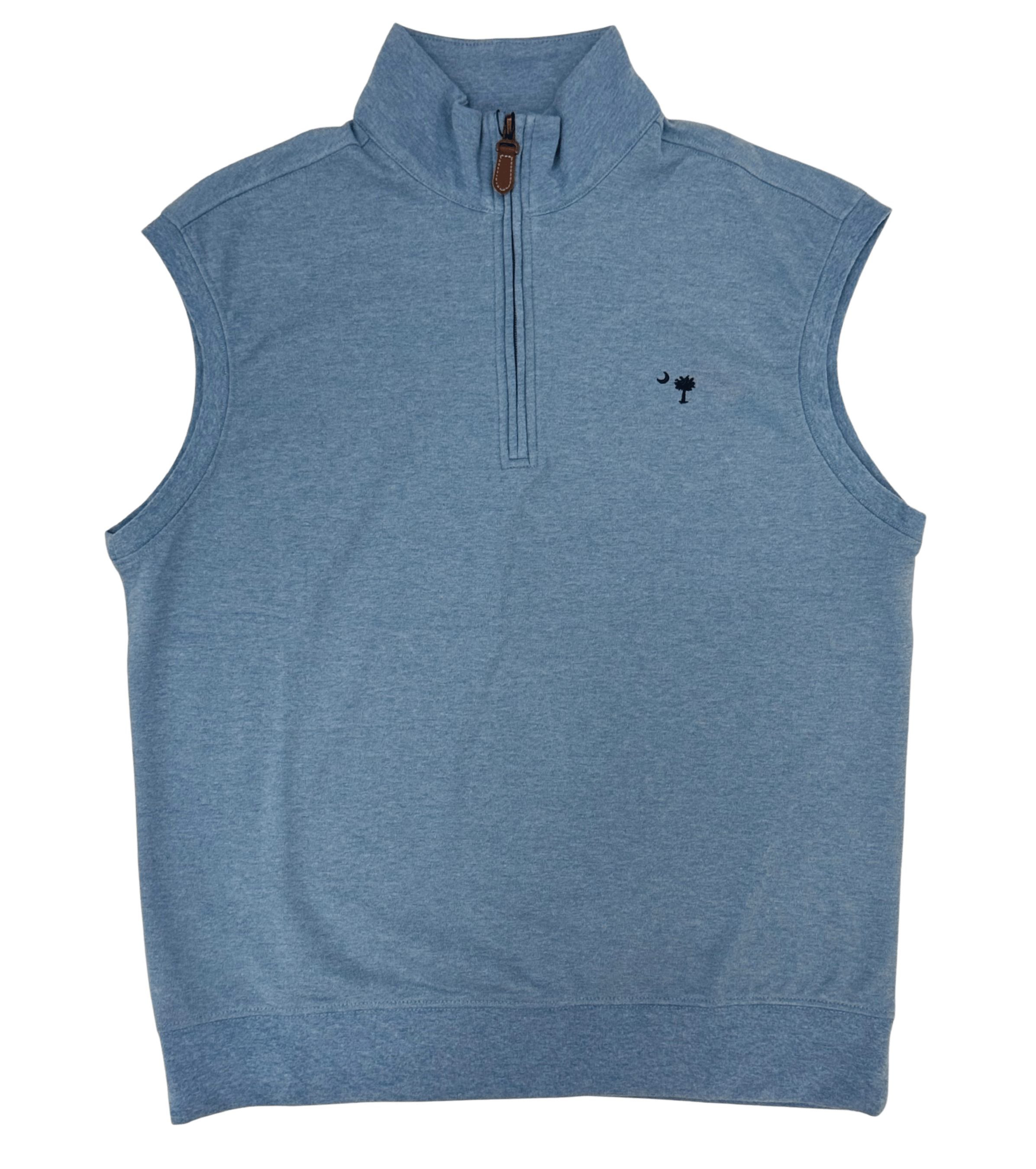 Cotton 1/4 Zip vest with embroidered Palmetto Tree & Crescent Moon.