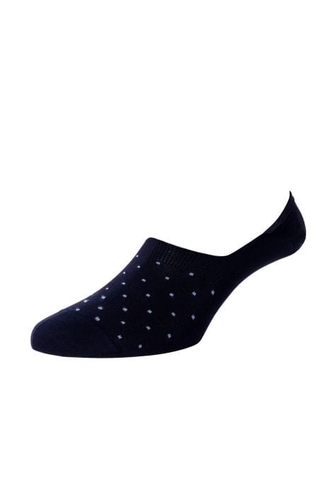 Perry men's invisible socks feature a low cut top edge to stay hidden under shoes. The Egyptian cotton no show socks have a subtle pin dot pattern, for the times when you want them to be seen. Pair with loafers or trainers for a modern no sock look.