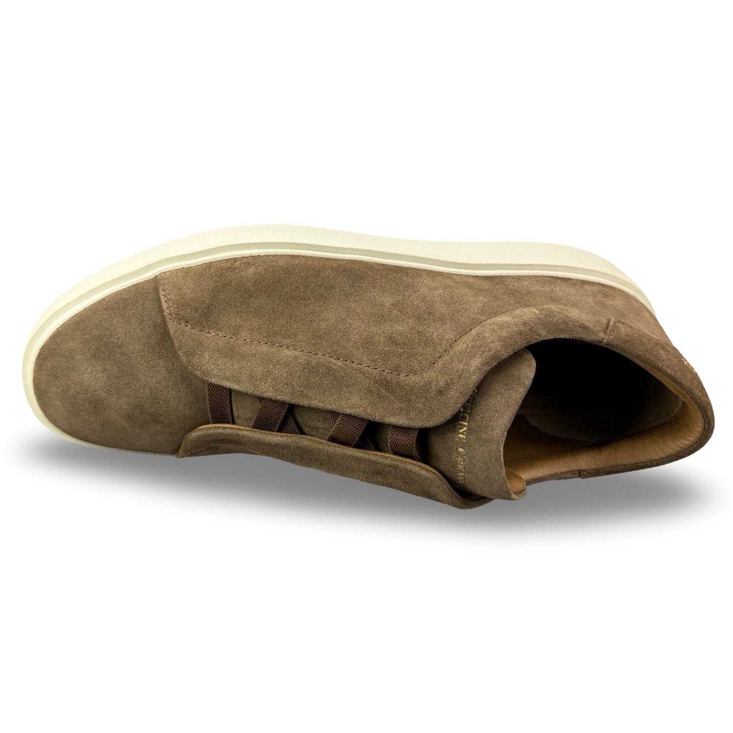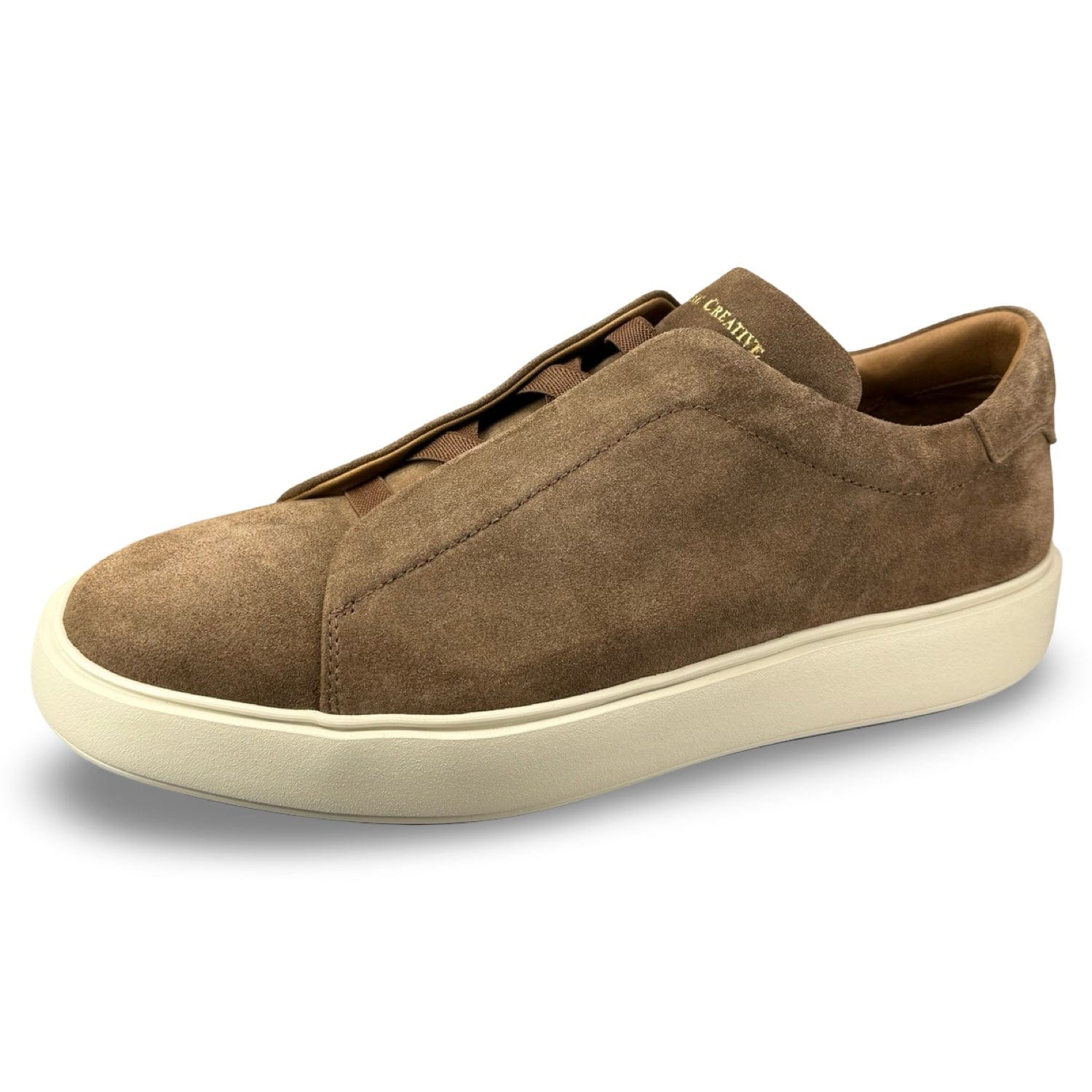 Rise up to any challenge in the Slouch Sneakers, handcrafted in Italy with a sleek taupe suede design. Featuring a lightweight EVA sole for effortless movement and a versatile, understated profile perfect for any occasion. Elastic laces and a cushioned insole provide a comfortable fit and feel.
