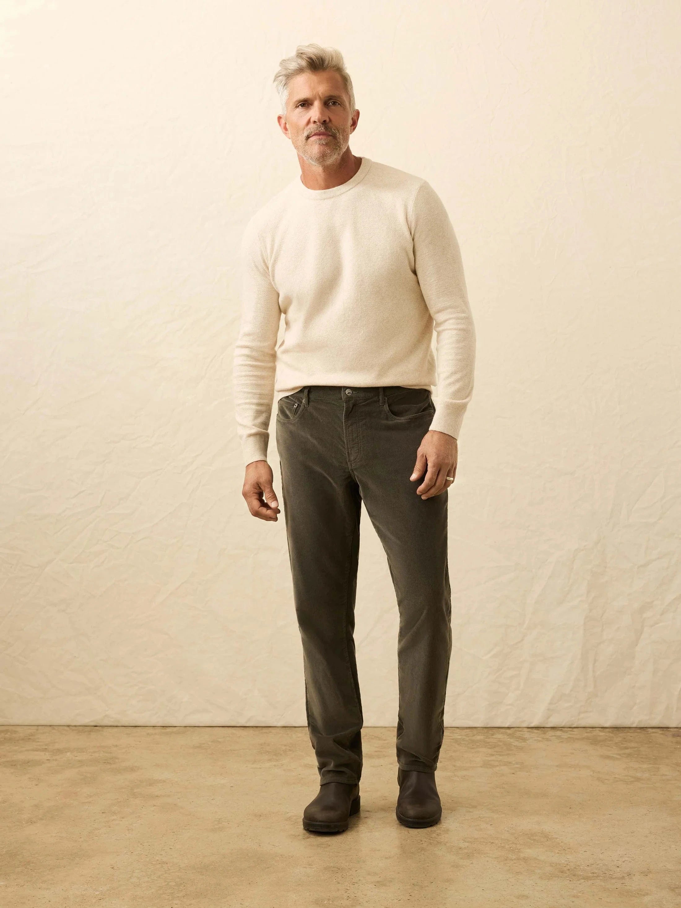 The corduroy answer to our Stretch Terry 5-Pocket, this pant behaves like a woven pant but has the comfort of being in your favorite sweatpants.