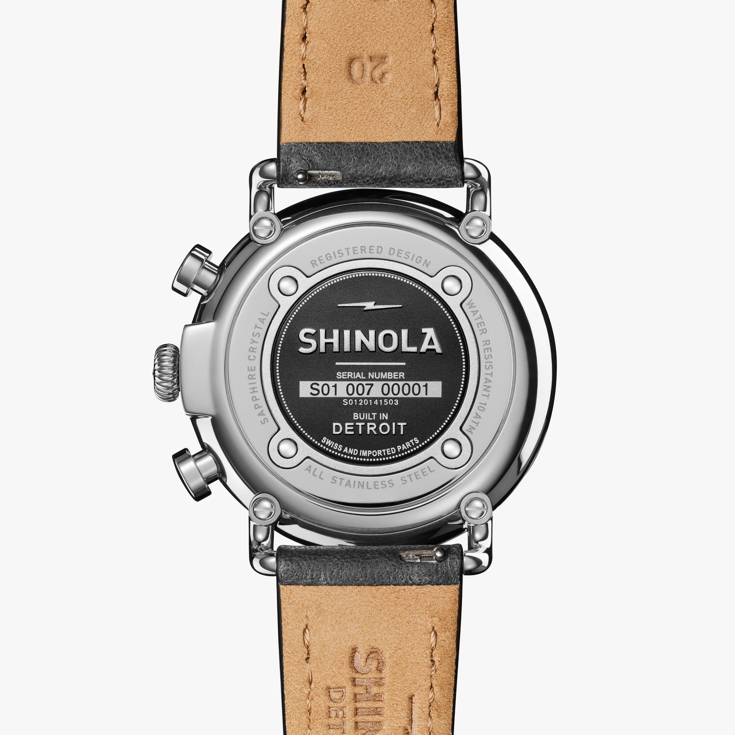 - FUNCTIONS: Hours, minutes, small seconds, date indicator, stopwatch function with two subdials.