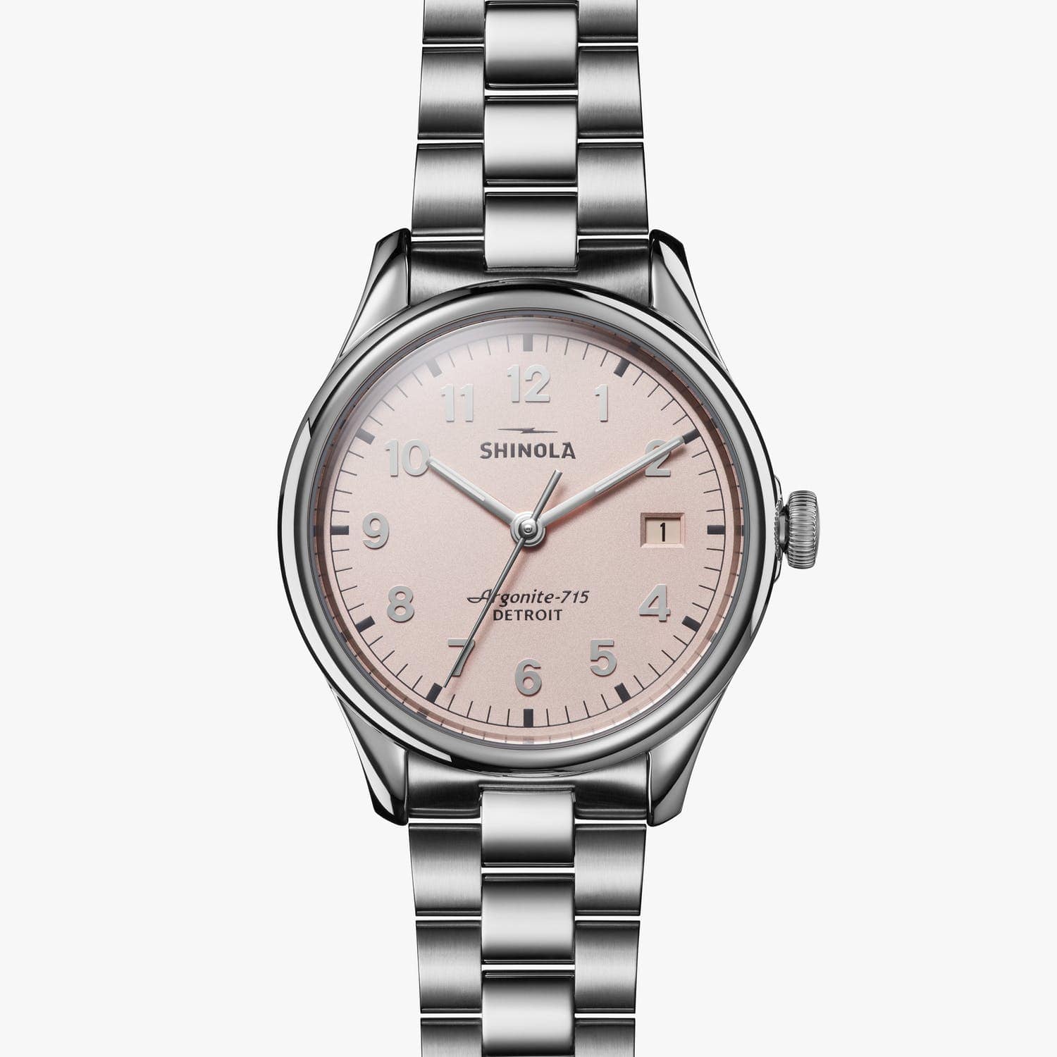 The Vinton, named after a neo-classical building in Detroit's Financial District, effortlessly exudes modern sophistication. Designed with a silhouette that flows together seamlessly?from the dial to the case to the bracelet?this timepiece embodies a captivating casual style and comfortably fits on the wrist. Featuring a light pink sandblasted dial, engravable caseback and a three-link stainless steel bracelet, this 38mm Vinton is a timeless classic that you'll never want to leave home without. From work to errands to a night out with friends?with the Vinton, the possibilities are endless.